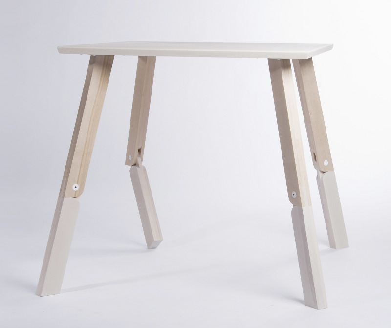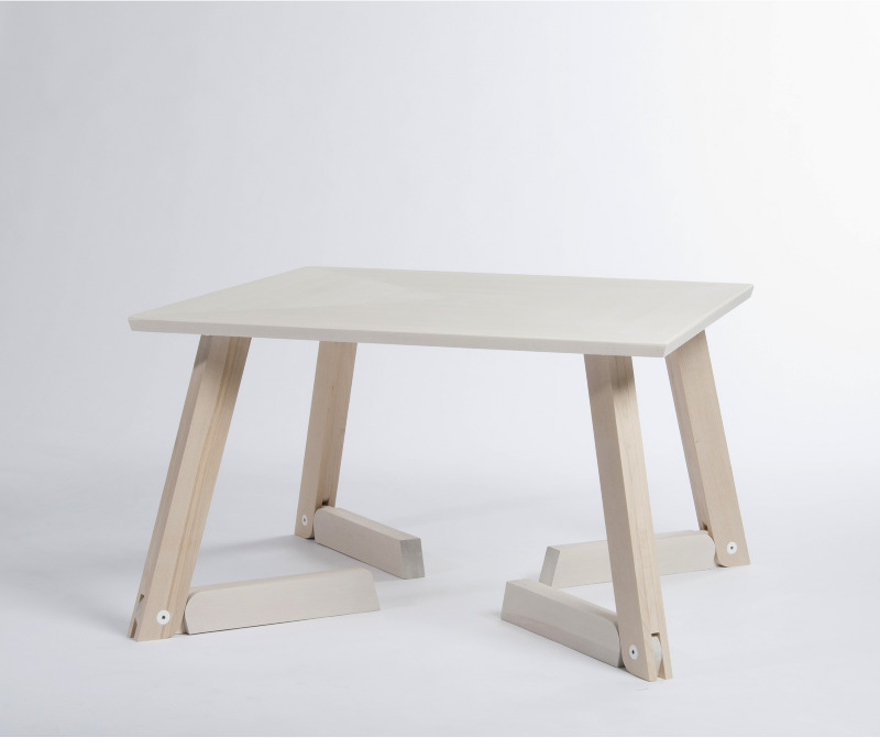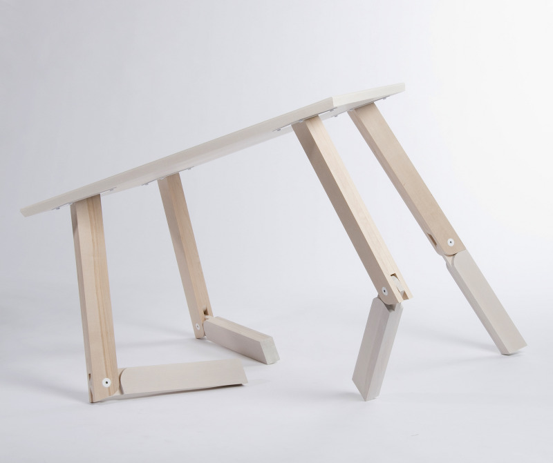 The table Bambi can be used at two different levels; as a coffee table or a small dining table. The table is inspired by the anatomy of the knee, where the bones can only bend one way. The location and angle of the table legs, as well as the meeting points of the joints, help keeping the table upright and stable. When the table is folded down and used at the lower level it can give you associations to a small foal who has bent its legs and laid down to rest in the meadow.